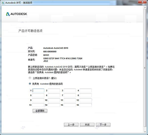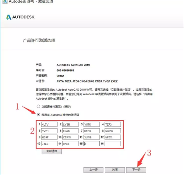 16、复制上一步的激活码至我具有autodesk分享的激活码框中,点下一步;