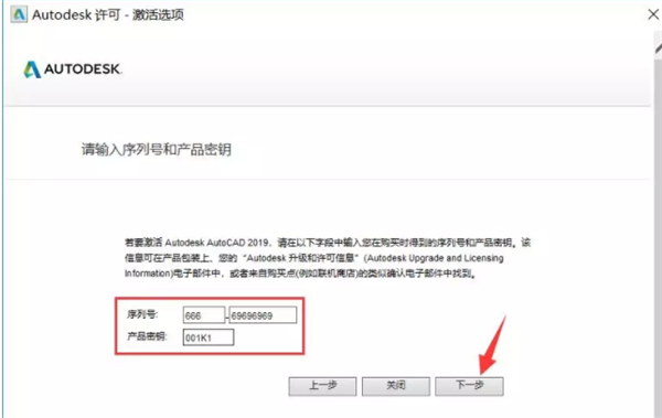 11、输入序列号:666-69696969,产品密钥:001K1,点击下一步;