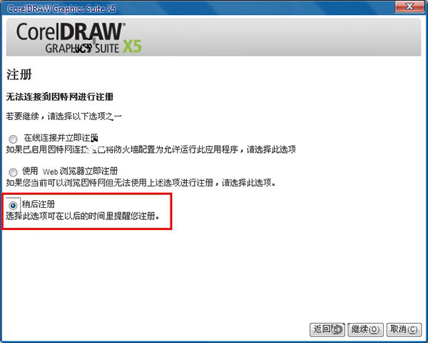 10、然后弹出下图的对话框,选择稍后注册,单击继续