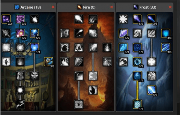 所以也有法师天赋叫做 奥冰 奥火 元素(冰+火),指这些法师在每个天赋树都加了不多不少的天赋点,但没有点出 31 点大技能。