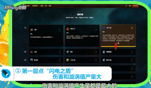 第一层点“闪电之盾”,伤害和漩涡值产生量都是最大的。