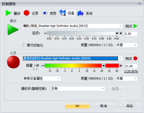 确保你在用的是你软件里选择的设备,在选项——控件属性——设备中,你可以看到选择的是否是你正在录音的设备。