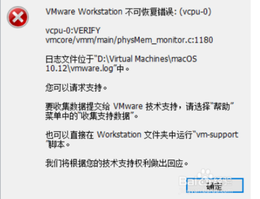 五 、 这时打开虚拟机如果发现无法正常启动出现以下错误: