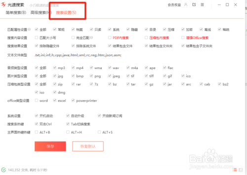 最后,光速搜索绿色版几乎可以搜搜电脑内所有的类型文件,大家可以根据自己的需求,以及文件的类型,自行到搜索设置里设置。