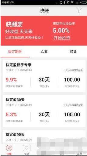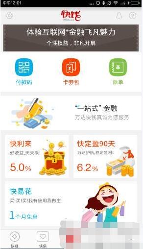 在快钱钱包首页,您可以查看最新高收益的理财产品