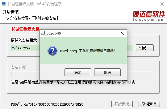 2、如果安装目录不存在,则会提示是否新建目录,点击确定