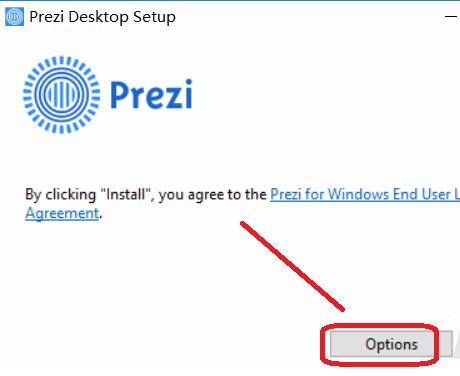1、prezi下载后,打开安装包,点options