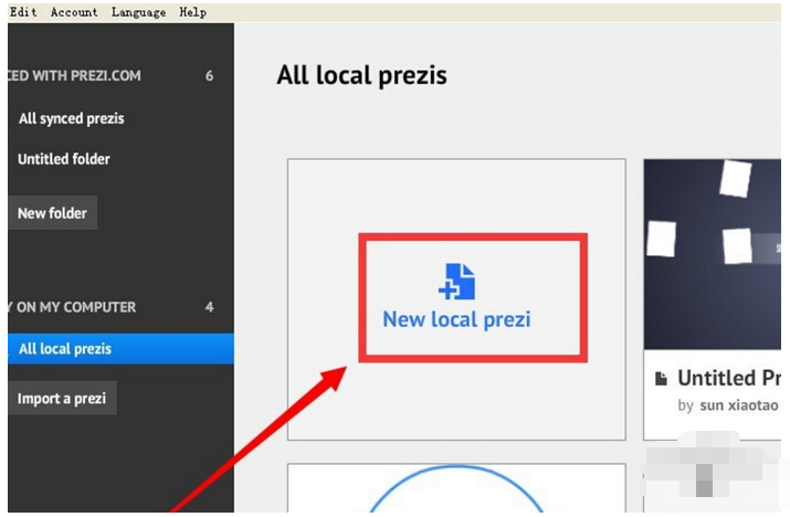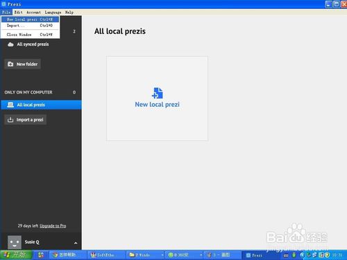 点File(文件),New local prezi(新建本地prezi);