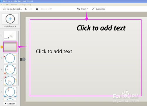 我们可以选择第一张幻灯片,在”Click to add Title”(点击添加标题)添加标题;