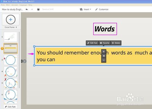 输入标题“Words”和正文“You should remember enough words as much as you can”;