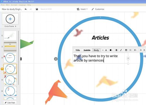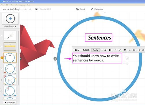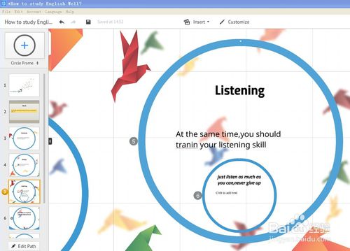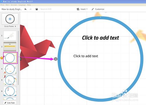 编辑完毕再点一下左边的第三张幻灯片,开始编辑第三张;