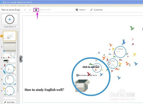 制作完毕,点按保存按钮将文稿保存。