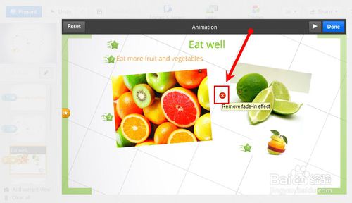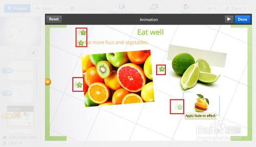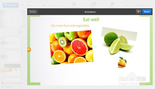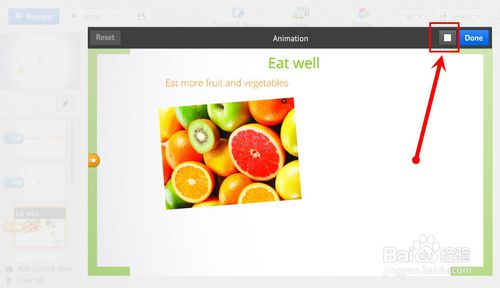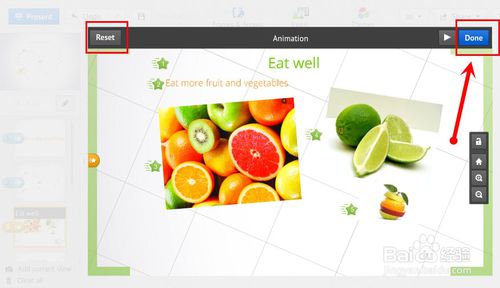 播放没有任何问题后,点击右上角的“Done”保存动画。如果不满意或者想取消动画点击左上角的“Reset”按钮即可。(完成后,在此点击“笔形”按钮推出编辑,然后可以进入正式的演示看看效果)
