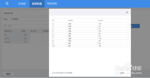 第六步,点击sql数据集按钮,查看显示的预览效果图,然后点击保存按钮,如下图所示: