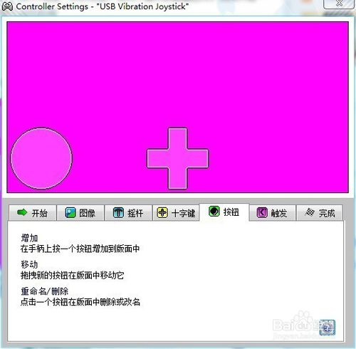 这一切完成后点软件界面右边的完成→关闭,进入按钮定义界面,鼠标点击白色小方块可定义对应的键位或者鼠标位置,这里不详细说,随爱好设置就可,主要说说摇杆和十字键的设置