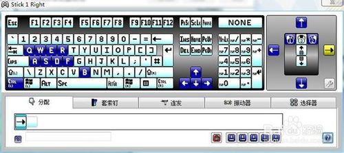 摆成十字型的是摇杆和按键,如果不知道哪个代表摇杆哪个代表十字键就按手柄,对应的小方块会变色,点击白色小方块后打开如图界面,把十字键和其中一个摇杆设置成鼠标移动,即图片右边的鼠标区域的上下左右箭头,(如果只有一个摇杆和十字键的手柄就只用设置十字键为鼠标移动)剩下的摇杆上下设置成滚轮,左右设置成NONE(就是小数字键盘上面的那个)