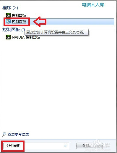 开始→控制面板