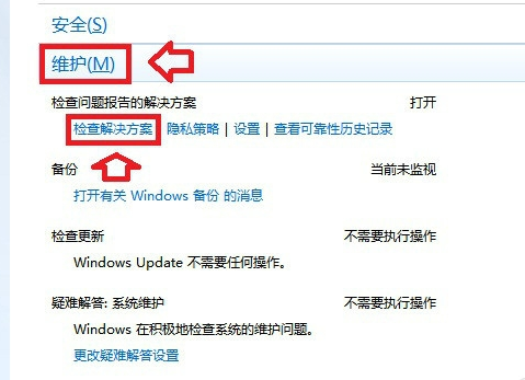 开始→控制面板→索引→操作中心→维护→检查解决方案