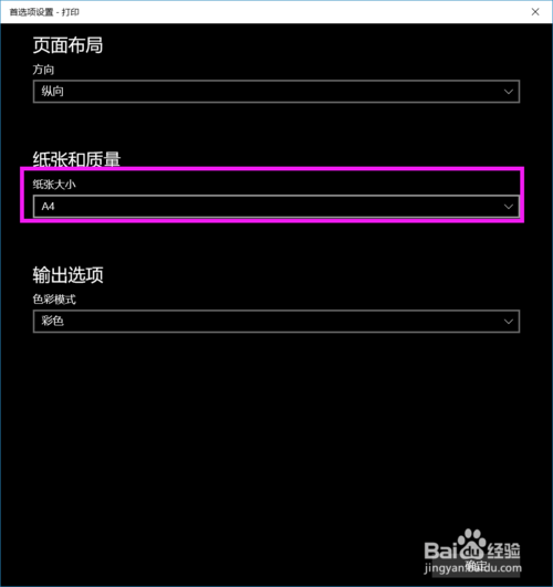 4、可以对页面布局,纸张大小以及色彩模式进行设置,主要还是纸张大小,一般选择 A4 ,设置好之后点击 确定 按钮