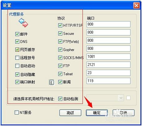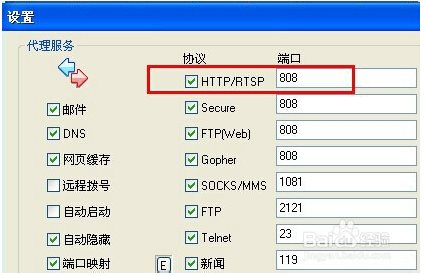 并在端口栏输入服务器端的电脑的代理软件的HTTP端口号808,可能你的是8080.