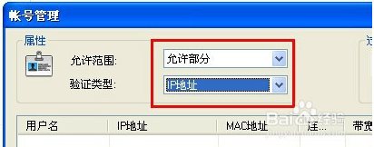 5、点击“账号”后弹出的对话框,在”允许范围”右边的下拉列表中选择”允许部分”