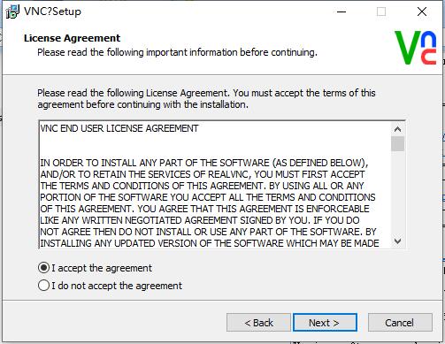 2、进入RealVNC安装协议,点击【I Accept…】,然后点击【next】。