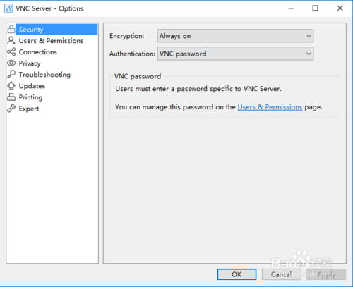 3、在客户端输入连接密码后,VNC Server 验证客户端是否具有存取权限。