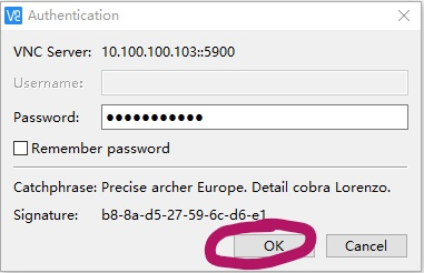 2、VNC Server传送一对话窗口至客户端,要求输入连接密码(可能为空),以及存取的 VNC Server 显示装置。
