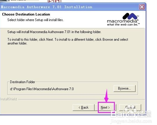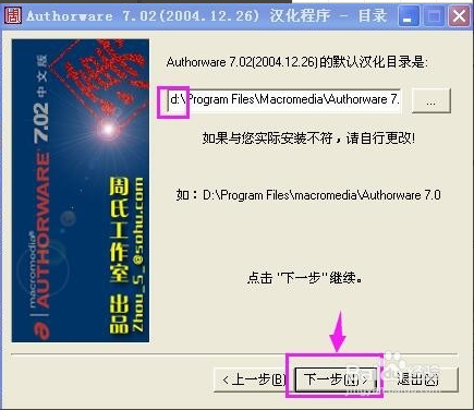 改变安装路径,与Authorware安装路径保持一致,然后按下一步;