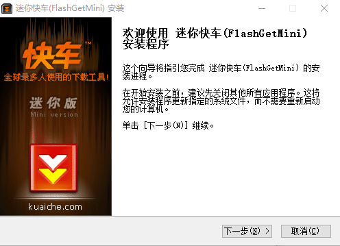 1、在本页面下载好迷你快车最新版软件包,解压后双击运行,单击下一步