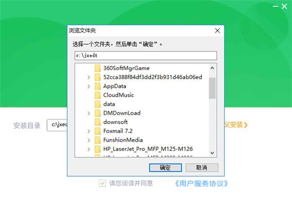 2、如果您要修改驾校一点通电脑版的安装位置,您可以点击【自定义安装】,在打开的浏览文件夹窗口中,您可以自行选择软件的安装位置,选择完成后点击【确定】