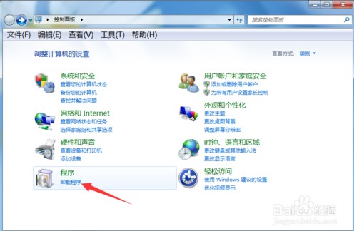进入控制面板后,我们会看到有一个“卸载程序”,我们点击。