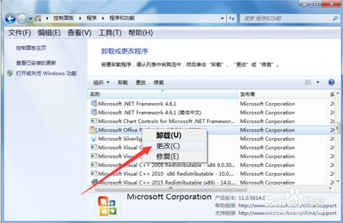 在卸载程序中,我们找到需要卸载的“cffice”安装程序右击,就会看到有一个“更改”按钮,我们点击。