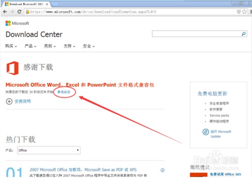 点击“单击此处”开始下载。