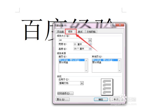 在弹出的对话框中,选择“纸张”子选项。