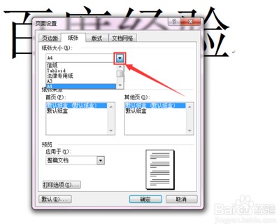 在“纸张大小”中,点击其右边的倒小三角形按钮,然后在弹出的下拉菜单中选择我们需要的纸张型号。