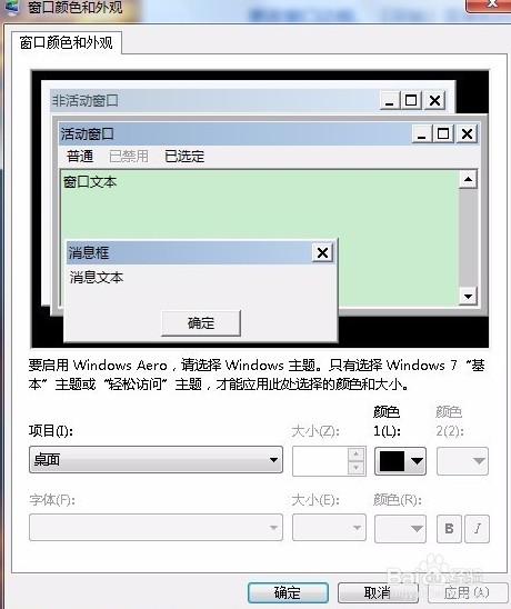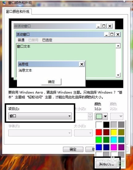 会弹出“窗口颜色和外观”窗口