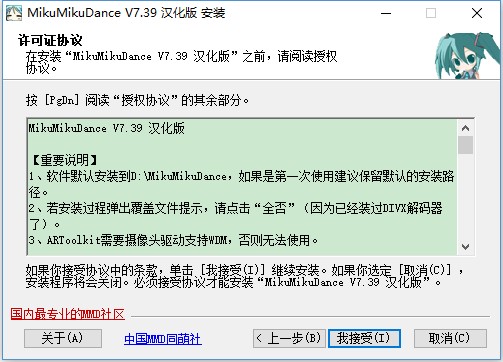 1、等待MikuMikuDance汉化版下载完成,双击exe文件进入安装向导