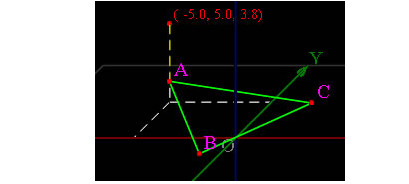 再在点A上按下鼠标,取得它的坐标X、Y值,不按Ctrl键向上拖动,使其坐标为(-5.0,5.0,3.8),松开鼠标得顶点V,如图.