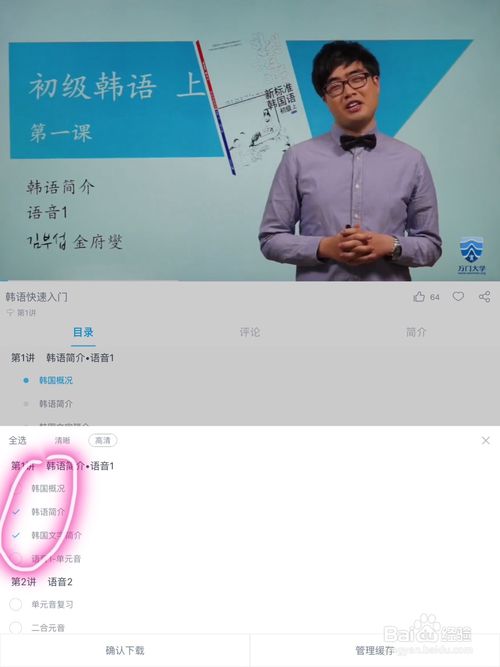 可以看到每个视频前都有一个小圆圈,勾选中小圆圈就可以下载该视频,然后点击左下角的确认下载。
