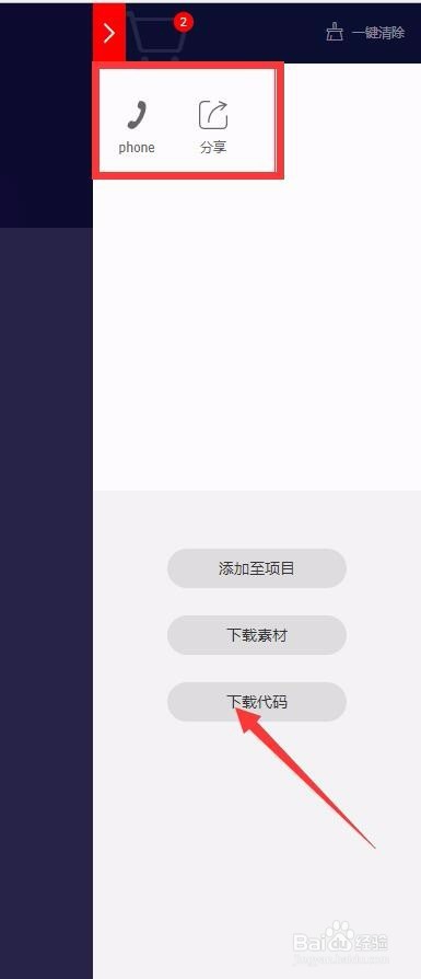 购物车:将图标加入购物车后,可以批量下载素材和代码、批量添加至项目