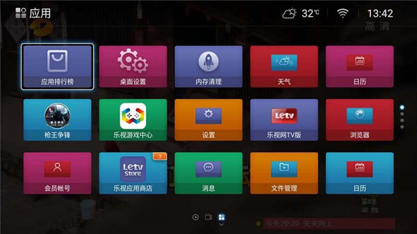 全视频TV桌面是集电视直播、应用桌面为一体的专为智能电视量身打造的一款应用。免费观看央视卫视高清直播及乐视轮播台(可添加自定义频道,高清秒切稳定)及简洁美观的应用操作桌面。