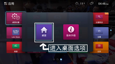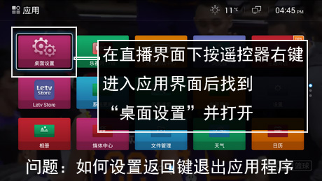 1、在直播界面下按遥控器右键,进入应用界面后找到“桌面设置”并打开