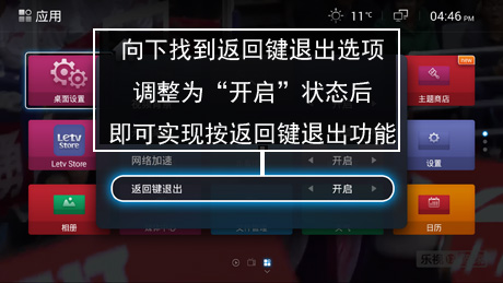 3、向下找到返回键退出选项,调整为“开启”状态后即可实现按返回键退出功能