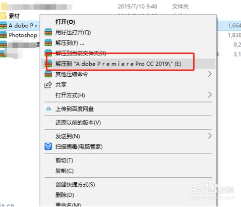 下载好的压缩包,选中【Premiere Pro CC2020】压缩包,鼠标右击选择【解压到Premiere Pro CC2020】