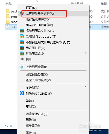 解压出来之后,进入文件夹选中【Set-up】可执行文件,鼠标右键选择【以管理员身份运行】