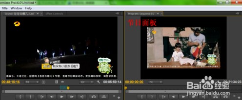 我们可以在右上角的“节目面板”进行预览,预览的时候有时预览会很卡,但是导出之后并不会出现卡顿,这只是特殊情况。当然,跟源面板差不多,节目面板也有微调按钮,你可以通过点击微调按钮来逐帧观察视频画面,当要求比较严格的时候就需要不断的微调了。