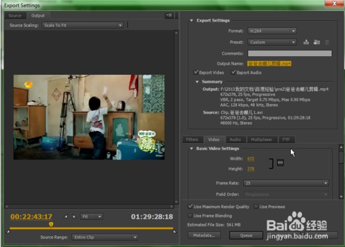 然后,在下图信息框中对比一下源素材与输出文件的参数是否相同。如果输出宽高大小比源宽高大小要大,视频边缘就会出现黑框,我们可以在右边预览框中看到黑框效果。虽然我们可以通过调整大小来改变,但是有时候出现黑框是无法避免的事,这取决于源素材的规格,不过稍微有一点黑框也不会影响观看,自己斟酌。