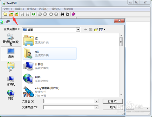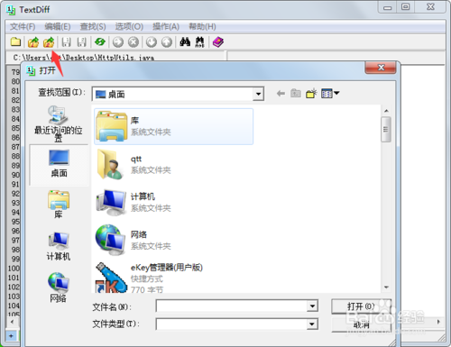 点击打开文件一,会弹出给窗口然你去选择你需要对比的文件,如图