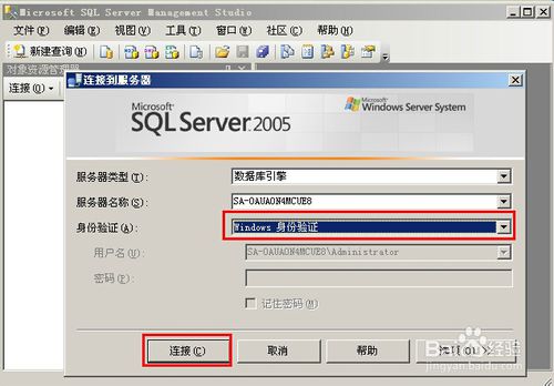 使用“Windows 身份验证”连接登陆SQL Server 2005数据库。如图所示: